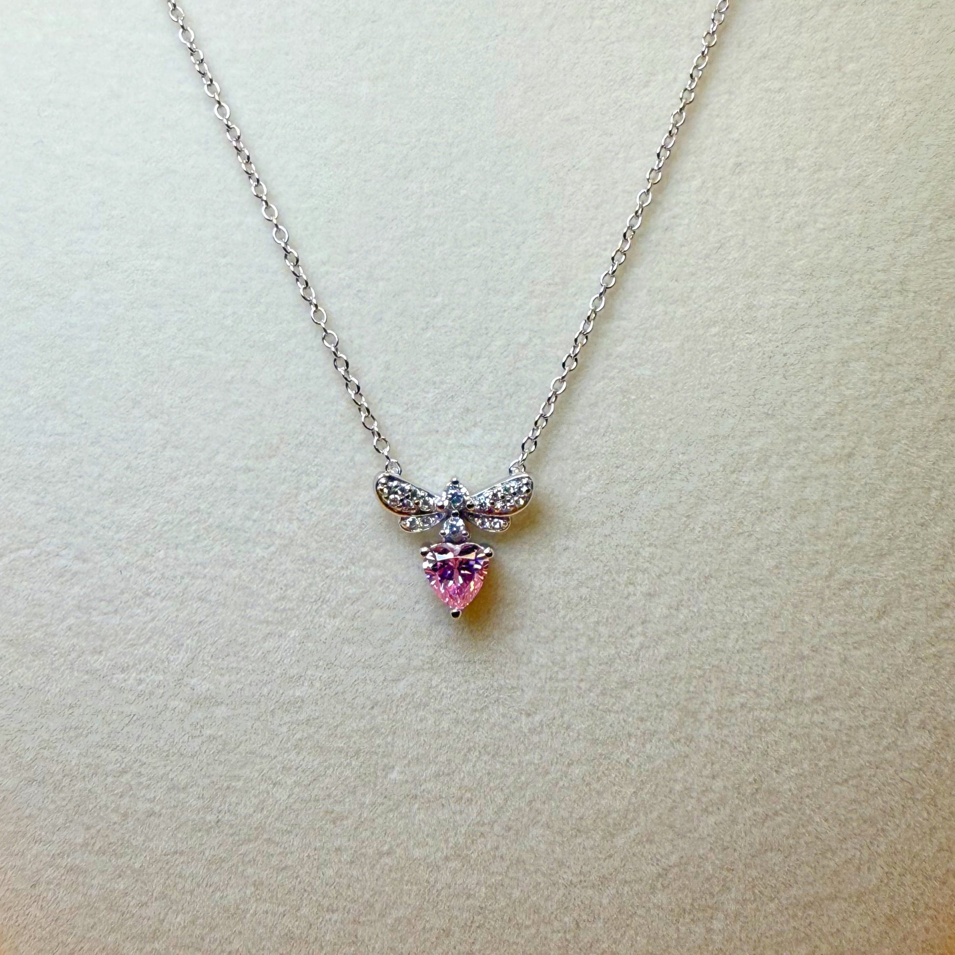 This delicate necklace showcases a sterling silver bee pendant with shimmering cubic zirconia wings and a heart-shaped centerpiece. Offered in both pink and clear stone variations, it brings a graceful blend of charm and elegance to your everyday.